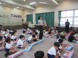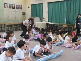 2・3時間目に、深谷消防署より2名の所員さんをお招きして、「ジュニア救命士育成授業」を行いました。