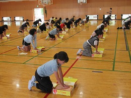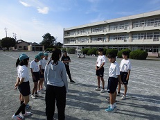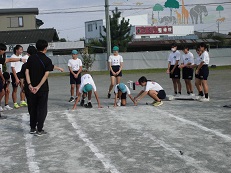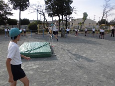 今日は、親善運動会の練習で花園中学校陸上部の先生と生徒にご指導いただきました。