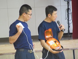 胸骨圧迫、AEDの使い方等の動画を視聴した後、実践する形で行いました。