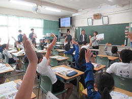 11日の2・3・4時間目は、関東農政局荒川中部農業水利事務所の方々による出前授業を行いました。
