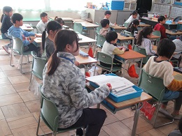 2学期に引き続き、「彩の国かがやき教師塾」の学生さんが来てくれました。今月、来月と活動します。子供たちは大学生のお姉さんがきて喜んでいました。