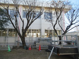 6月から始まった特別棟外壁塗装工事ですが、終盤戦に入っています。塗装を終え、校舎の周りを覆っていたものを外れ、きれいに塗られた校舎がお目見えしました。