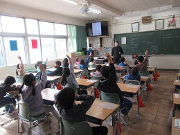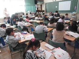 「呼名されてると返事をして立って発表する」「話を聞く時の姿勢」等しっかりとできている1年4組の子供たち。安心した環境で生き生きと学び、順調に力をつけているのがわかりました。