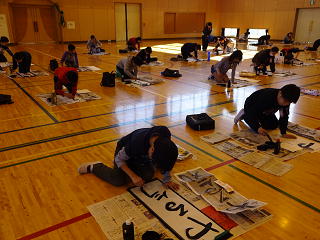 気持ちのこもった「やる気」の字をみんなで真剣に書きました。