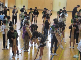 29日(水)2校時、深谷市協働推進課の皆様をお招きして、ねぎ束を作り体験を行いました。11月23日を「深谷ねぎらいの日」と称し、協働推進課の方の話を聞きながら、ねぎ束を作りました。