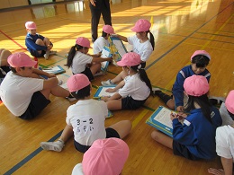 今回は、体育の「プレスボール」の授業でした。子供たちは佐藤先生の話を聞き、一生懸命体を動かしていました。