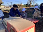 年季の入った脱穀機を持ってきていただき、作業を行いました。