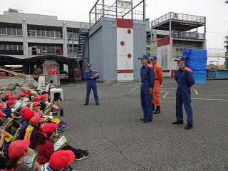 実際に訓練している様子や施設、消防車のしくみなどを見せていただきました