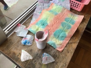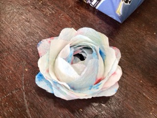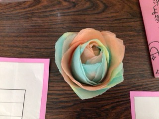 なかよし学級の皆さんが、キッチンペーパーと水彩絵具を使って綺麗な花を作ってくれました。