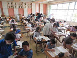 ボランティアの先生の指導の下、150ページある問題集に取り組んでいます。