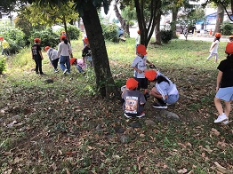 子供たちは木の幹や根っこ、地面の隅々まで「ここに蟻がいるよ!」「こっちはバッタだ!」と意気揚々と虫を探しては大喜びでした。