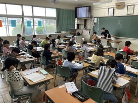 先週の木曜日から始まった、ふっかちゃん夕焼け計算道場。4年生を対象にした算数を学習する時間です。今年は37名の児童が参加しています。