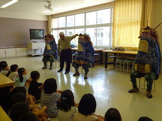 実際にたいこをたたきながら舞う様子や近づいてししまいの造りを見ました。