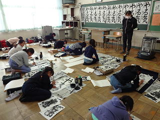 今日は、10日から行われてきた書きぞめ練習の最終日でした。