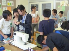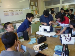 今日は、学校応援団のミシンボランティアの皆様に来て頂き、ミシンの学習をしました。