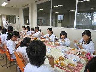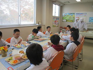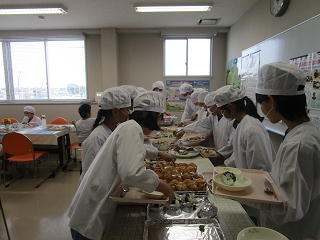 今日は3組がバイキング給食を行いました。バランスを考えながらメニューを選び、盛りつけをしました。鮭のおにぎりがとても人気で、一粒も残さず完食しました!どのメニューもみんなでおいしくいただきました。