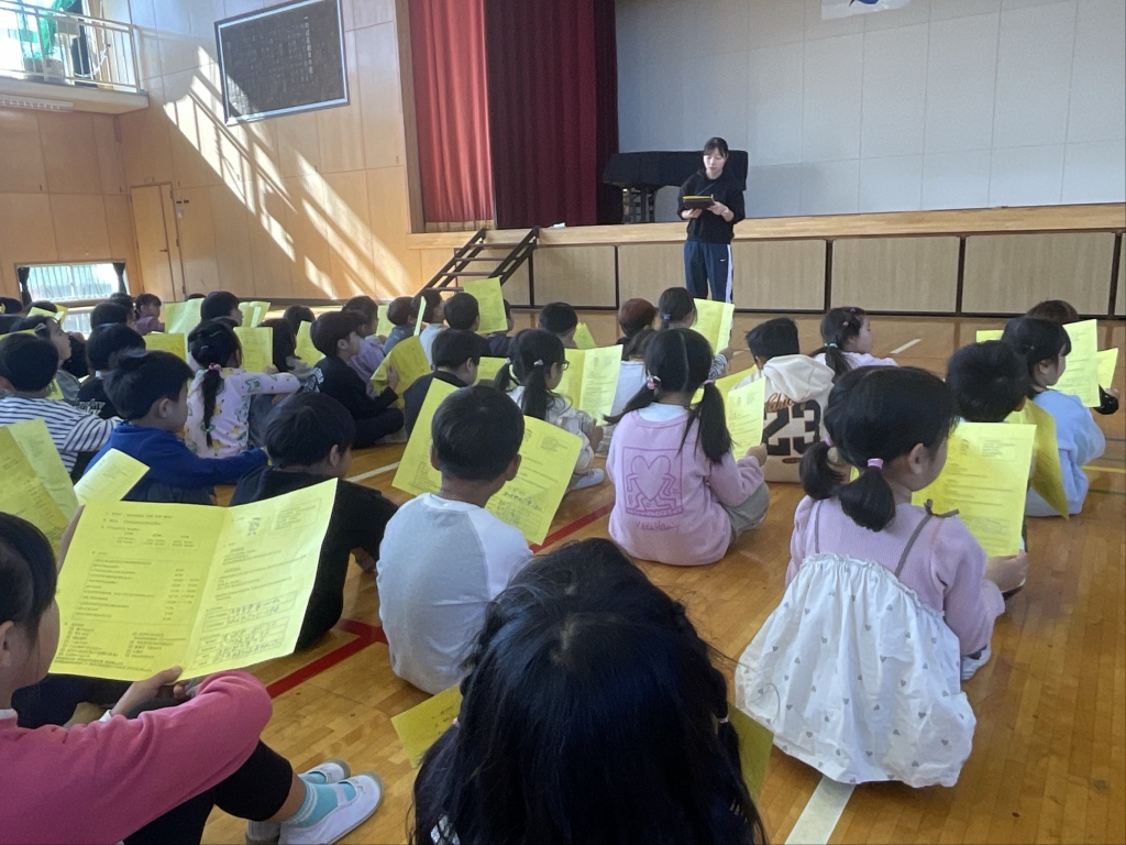 校長先生からは、先月のニュースから2つお話がありました。どんな話だったのかは、ご家庭でお子さまに聞いてみてください。