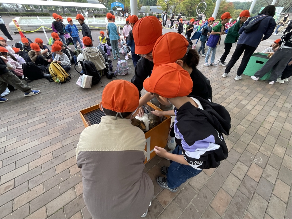 午前中は学年全体で動物園の北園から動物園をまわり、5人ずつでテンジクネズミのコンタクト(ふれあい)を行いました。