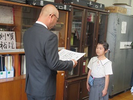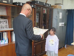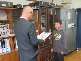 校長先生のお話の前に、2学期頑張った代表児童10名が表彰されました。その後、教室でも多くの児童が賞状を受け取りました。賞状を手にした児童のみなさん、おめでとうございます。