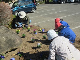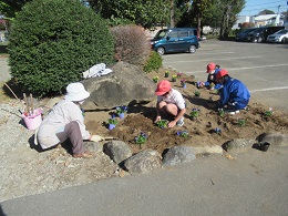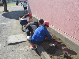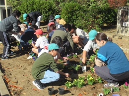 12日(水)の業間休み、生き物委員会の子供たちが学校応援団の方々にご協力いただき花を植えました。